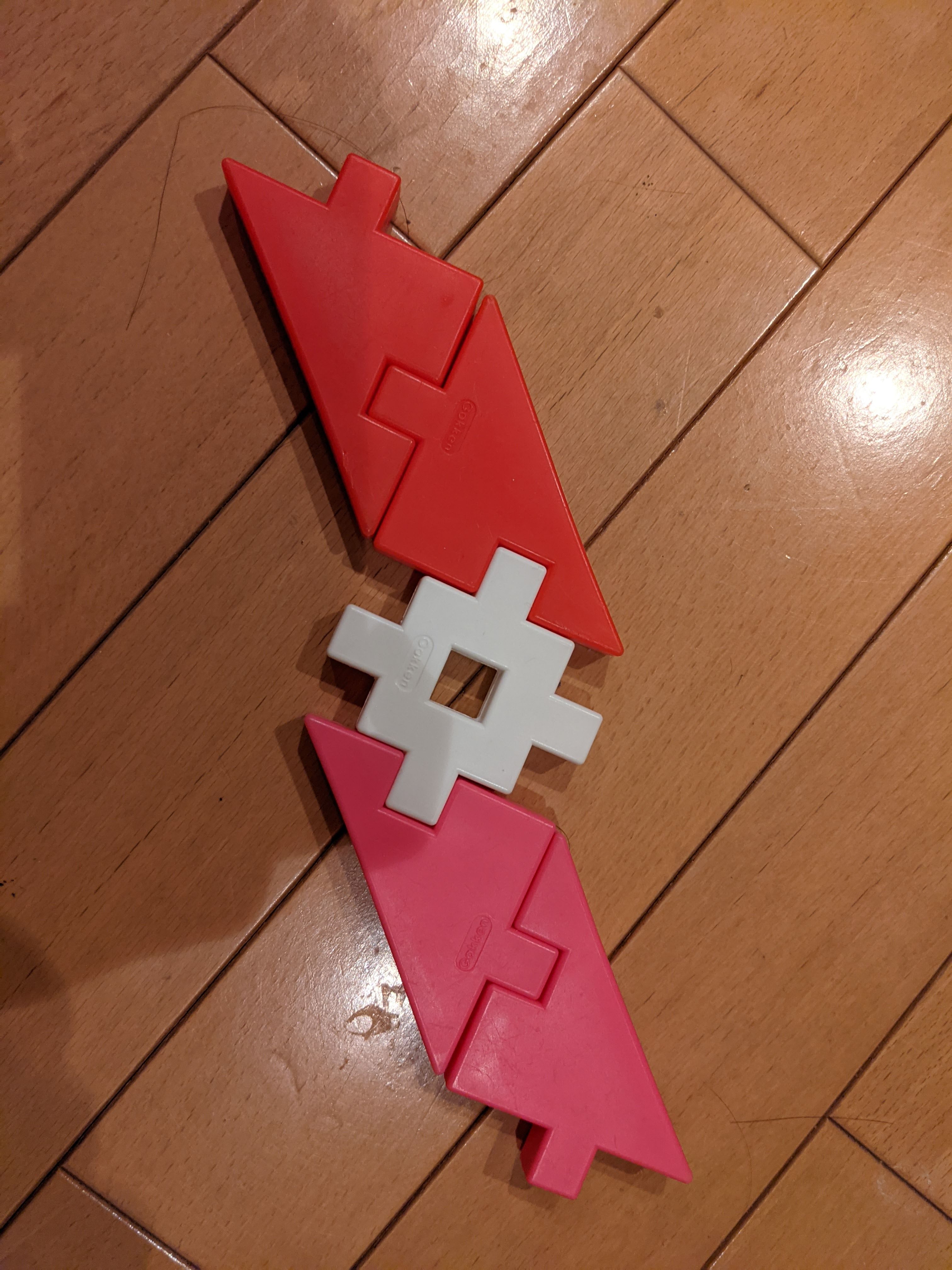 子供と夕食後に遊んでいたら、ニューブロックで何やら作り始めて、「はい、お父さん、紅生姜だよ、どうぞ!」と持ってきた。